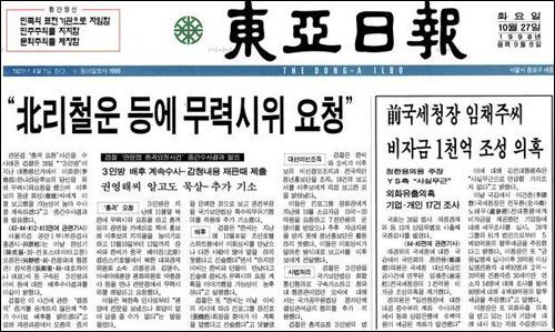동아일보는 1998년 10월 1일자 1면에 '대선직전 북에 판문점 총격요청'이라는 제목으로, 당시 한나라당 이회창 후보의 비선조직인 오정은∙장석중과 한성기 3인이 공모해 북측에 무력시위를 요청했다는 단독 기사를 게재해 파문이 일었다.