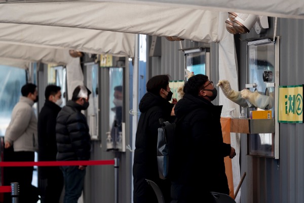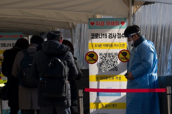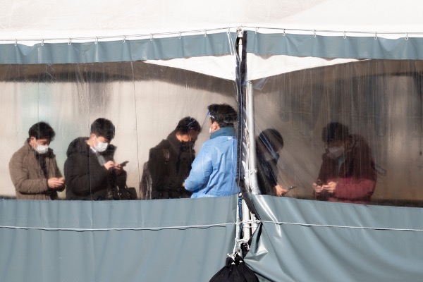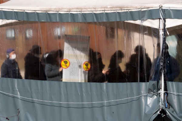 7일 서울시청 앞 광장 코로나19 임시선별진료소에서 시민들이 검사 받기 위해 기다리고 있다. 이날 0시 기준 코로나19 신규 확진자는 3717명으로 확인됐다.