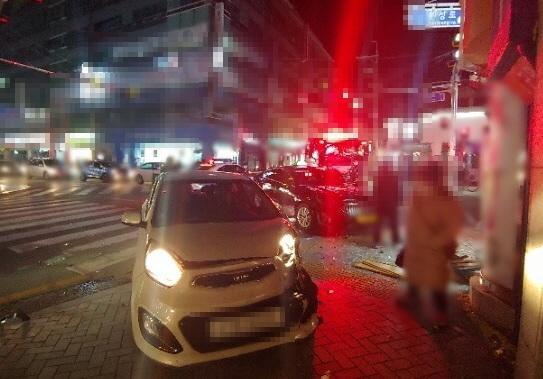 ▲ 8일 밤 김해시 서상동 교차로 주변에서 발생한 차량 충돌 현장. [경남경찰청 제공]