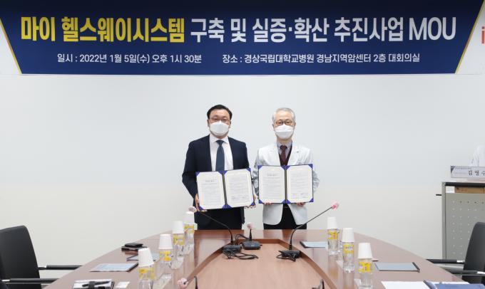 경상국립대학교병원(병원장 윤철호)은 지난 5일 경남지역암센터에서 ㈜아이티아이즈(대표 이성남)와 '마이 헬스웨이 구축 사업 확대'를 골자로 하는 공동협력 양해각서(MOU)를 체결했다.