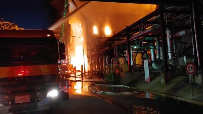 12일 아침 6시 22분께 울산시 남구 처용로 고사동 SK에너지 공장에서 발생한 화재 현장의 드론 촬영 모습. 이 불은 에너지저장장치(ESS)를 보관하고 있는 3층짜리 건물에서 시작됐다.