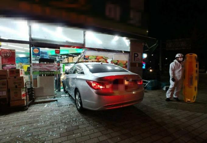 이 사고 충격으로 A 씨의 승용차가 튕겨져 나가면서 유리로 된 마트 출입문을 파손한 뒤 멈춰 섰다. 이 사고로 승용차 운전자 2명이 다쳐 병원으로 옮겨졌다.