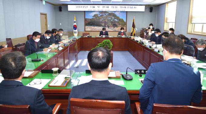 이번 정례간담회에서는 '남부내륙철도 기본계획 확정 고시'에 관한 집행부의 보고와 함께 2022년 연간 회기 운영일정 등 의회 주요 운영사항을 협의했다.