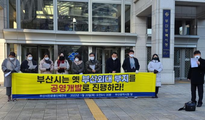 "공공기여금 받고 사업허가하려고 한 건 아닌지 의심" 부산 남구 우암동 옛 부산외대 부지를 사들인 민간사업자가 대규모 아파트 건설을 추진하고 있는 가운데 시민사회단체가 일제히 공영개발을 촉구하고 나섰다.