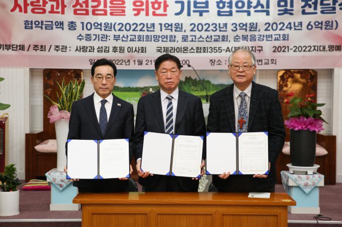 사랑과 섬김 후원 이사회와 부희연(부산작은교회희망연합·총재 정경철 목사), 로고스선교회(이사장 이건재 목사), 순복음강변교회(담임목사 이건재) 등은 앞으로 3년간 총 10억 원의 기부 협약을 체결했다.