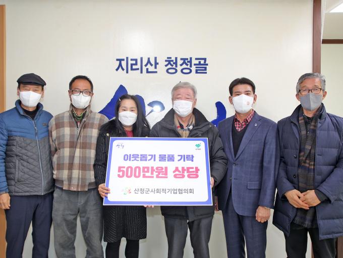 산청군사회적기업협의회는 지난 21일 산청군을 찾아 직접 생산한 500만 원 상당의 물품을 어려운 이웃에 전달해 달라며 기탁했다.