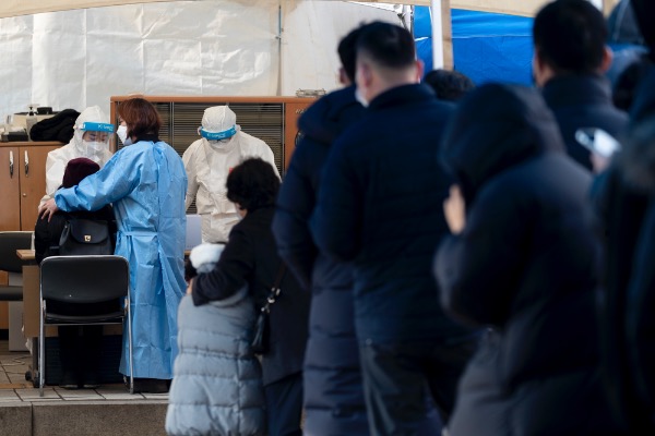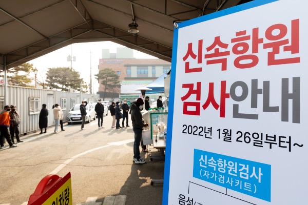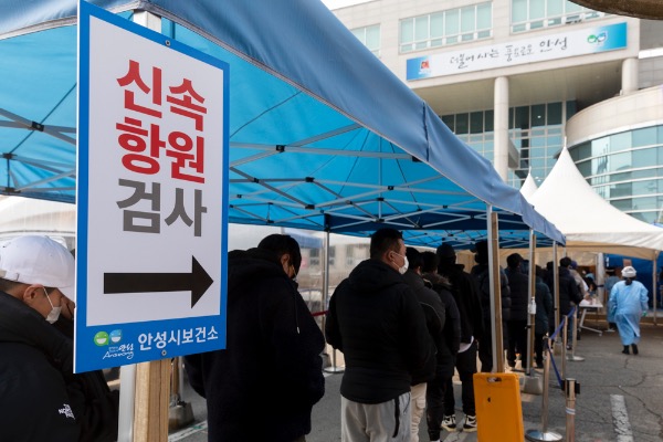코로나19 방역 체계가 오미크론 대응 단계로 전환된 26일 경기 안성시보건소 코로나19 선별검사소. 시민들이 신속항원검사를 받기 위해 기다리고 있다.
