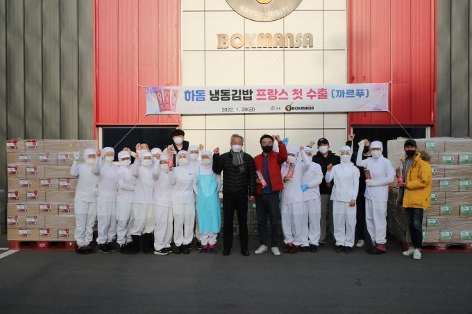 하동군은 지난달 28일 하동읍에 있는 '복을만드는사람들'(복만사) 공장에서 윤상기 군수 등이 참석한 가운데 프랑스의 대형 유통회사 '까르푸'으로 냉동김밥을 첫 수출하는 선적식을 가졌다. 이날 수출 규모는 15톤 3만 달러어치다.