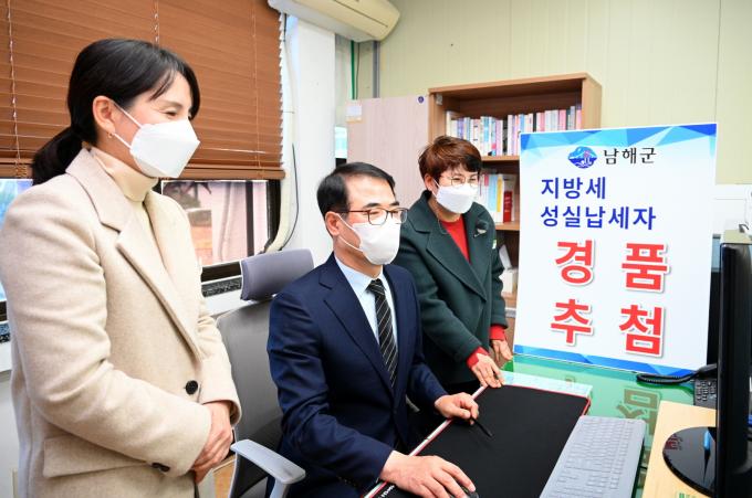 지난달 26일 열린 추첨 행사는 '남해군 성실납부자 등 지원조례'에 따라 정기분 지방세 납기 내 납부자로 대상으로 진행됐다.