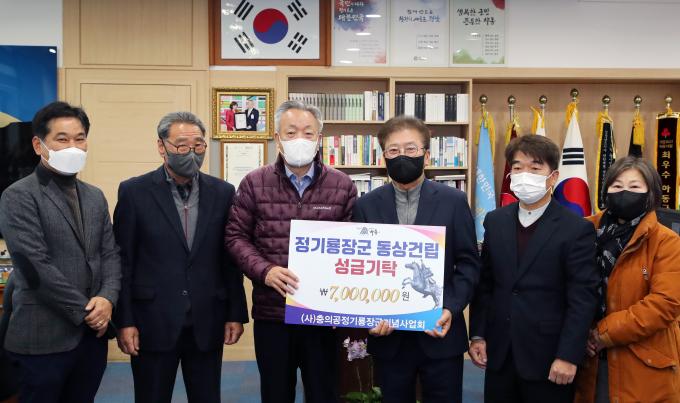 (사)충의공정기룡장군기념사업회(회장 문찬인)는 정기룡 장군 동상 건립에 도움을 주고자 기념사업회 회원들의 참여로 모은 성금 700만 원을 하동군에 기탁했다.