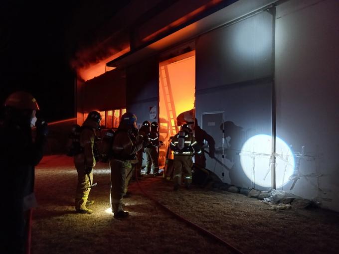 이 불은 창고 건물(66㎡)에 있던 집진기 필터와 환풍기 등을 태우고 2시간 만에야 완전히 진화됐다. 다행히 인명피해는 없었다.