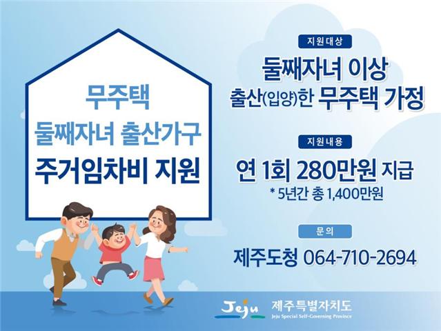 2021년 1월 1일 이후 둘째 자녀 이상 출산하거나 입양한 무주택 가구로, 출산일을 포함해 12개월 이전부터 제주도에 주민등록상 주소를 두고 출생아와 함께 거주하는 부모에 한해 신청할 수 있다.
