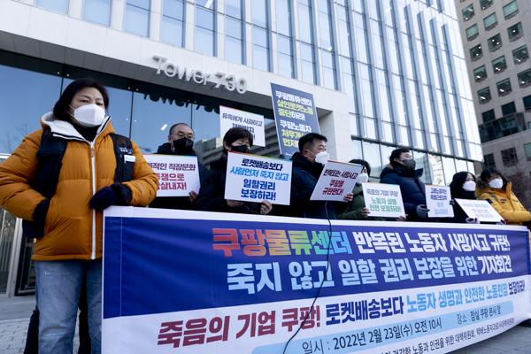 쿠팡 물류센터 노동자 사망사고 규탄 기자회견