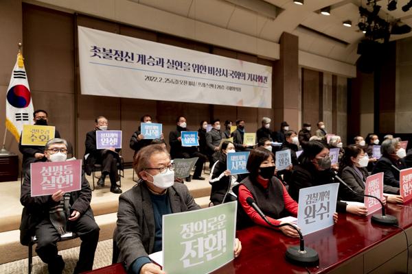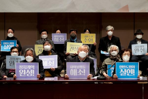 이들은 "국민의 촛불 결과로 집권한 문재인 대통령과 여당은 정의로운 나라를 만들겠다고 약속했지만 지난 5년간 국가 권력과 사회 권력을 민주적으로 개혁하는데 많이 부족했다"고 비판했다.
