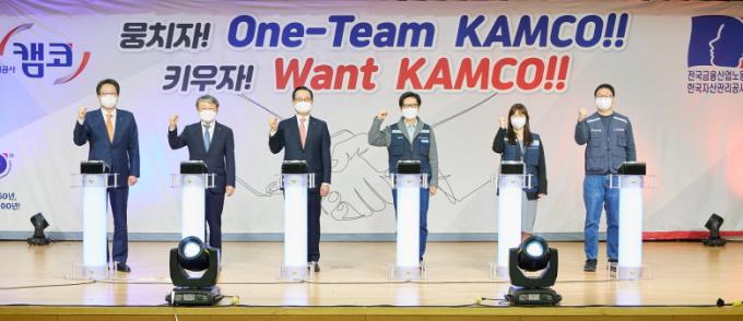 김승태 노동조합 위원장은 "하나되어 발전하는 100년 캠코를 위해 노사간 내부 소통과 공감을 기반으로 한마음으로 노력해 국민으로부터 신뢰받는 공기업이 되도록 노력하겠다"고 다짐했다.