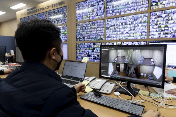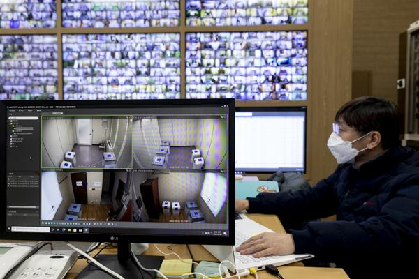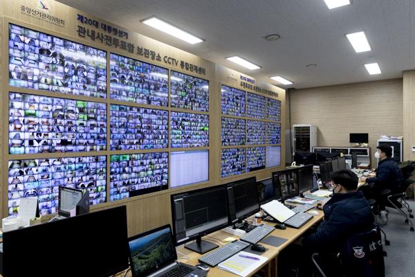 제20대 대통령 선거를 7일 앞둔 2일 경기 과천 중앙선거관리위원회 관내사전투표함·우편투표함 보관장소 CCTV 통합관제센터에서 관계자들이 모니터링하고 있다.