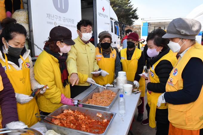이어 6일에도 새마을회, 자율방범연합대, 적십자사, 의용소방대원 등30개 단체 558명이 휴일도 잊고 피해 주민들을 위해 급식지원, 산불진화 등 자원봉사에 나섰다.