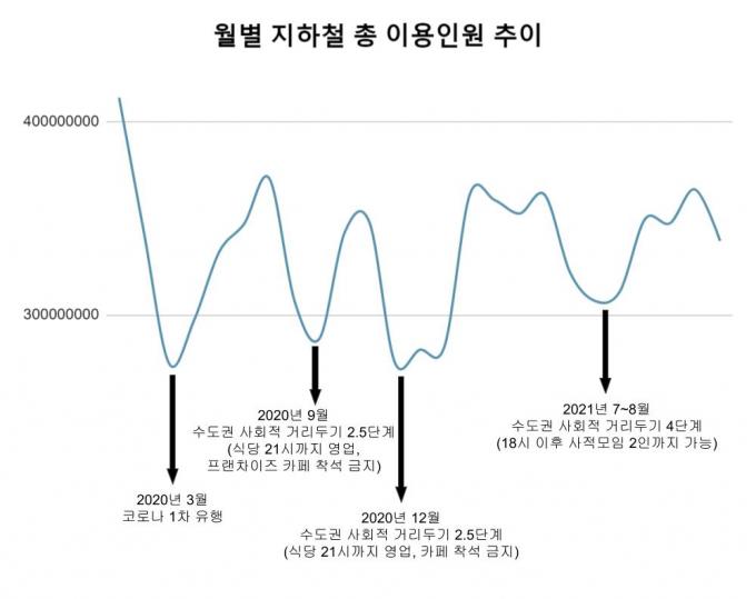 수도권 지하철 月이용객 2년새 8000만 명이나 감소
