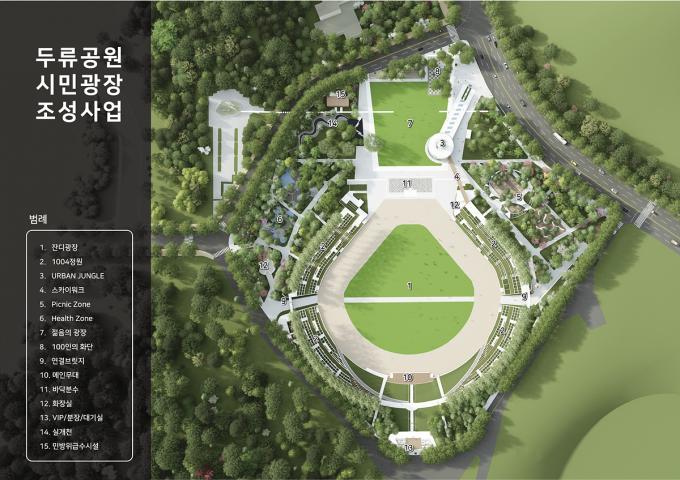 시민광장 리모델링은 두류야구장 일대 5만6000㎡ 부지에 총사업비 150억 원이 투자되는 사업으로 잔디광장, 1004정원, 메인무대, 피크닉존, 헬스존, 젊음의 광장 등이 조성되면 시민의 소통공간이자 대구시 대표 축제인 치맥축제와 관등놀이 등 행사축제의 공간으로 거듭남은 물론 대구의 문화·관광 활성화에도 기여할 것으로 기대된다.