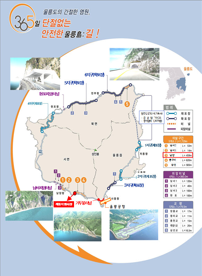 경북도는 28일 울릉 서면 남양리에서 울릉도 일주도로 2단계 건설공사 준공을 기념하는'남양터널 개통식'을 가졌다.