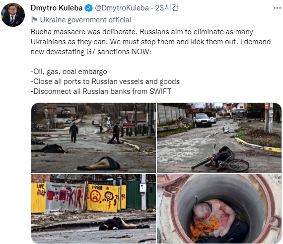 지난 주말 수도 키이우(키예프) 교외의 소도시 부차(Bucha)에서는 러시아군 철수 이후 거리와 대규모 묘지에서 수백 명의 민간인 시신이 발견돼 전 세계에 충격을 안겼다.