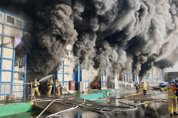 경찰과 소방당국은 배터리를 보관하고 있던 창고에서 불이 시작돼 옆 공장으로 번진 것으로 보고, 정확한 화재 원인과 피해 규모를 조사하고 있다.