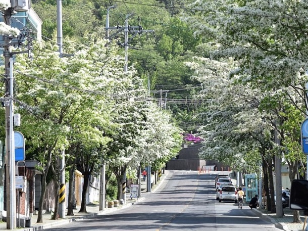 25일 시에 따르면 이팝나무는 잘 알려진 대로 흰 꽃이 만개한 모습이 쌀밥(이밥)을 수북이 담은 모습 같다고 해 이팝나무가 되었다는 설, 입하(立夏)를 전후로 꽃이 핀다고 이팝나무가 되었다는 설 등 여러 가지가 있다.