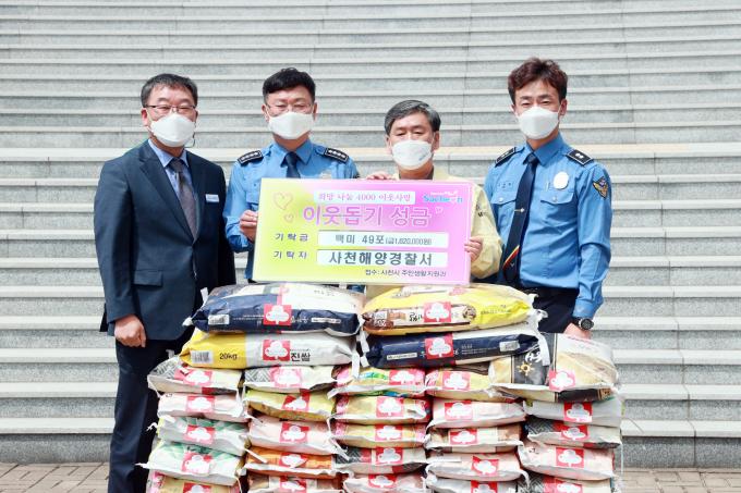 사천해양경찰서(해경서장 옥창묵)는 지난달 29일 사천시청을 방문해 개서식 행사에서 모인 쌀(백미 49포)을 관내 어려운 이웃을 위해 써달라며 기탁했다.