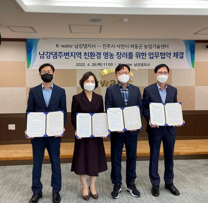 사천시에 따르면 K-water 남강댐지사가 사천시·진주시·하동군과 '댐주변지역 친환경 영농 지원사업' 추진을 위한 상호협력 업무협약을 체결했다.