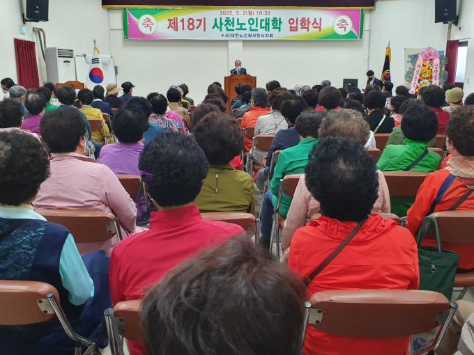 앞선 지난 2일에도 대인노인지회 대강당에서 사천노인대학 입학식이 열렸으며, 입학생은 148명이었다.
