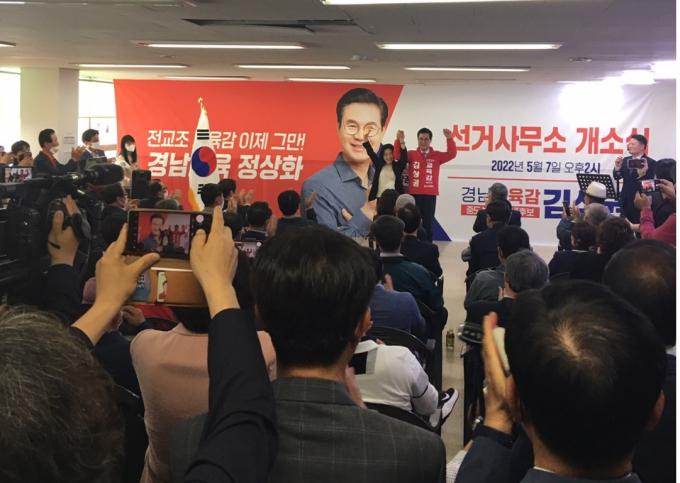 지난 3월 30일 중도·보수 단일화 후보로 선정된 김상권 후보도 같은 날 의창구 국민의힘 경남도당사 옆 한빛메디컬센터 8층에서 사무소 개소식을 열고, '경남교육의 정상화'를 외쳤다.