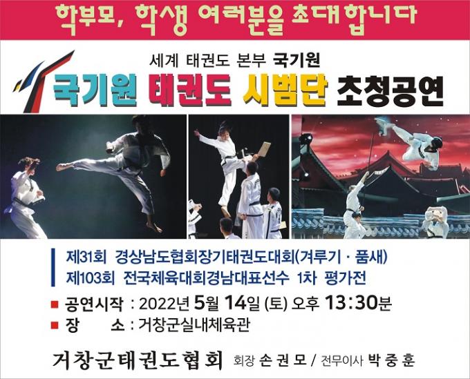 거창군은 오는 14~15일과 21일 군체육관에서 '제31회 경남협회장기 겸 제103회 전국체전 경남 대표선수 선발 1차 평가전 태권도 대회'를 개최한다.