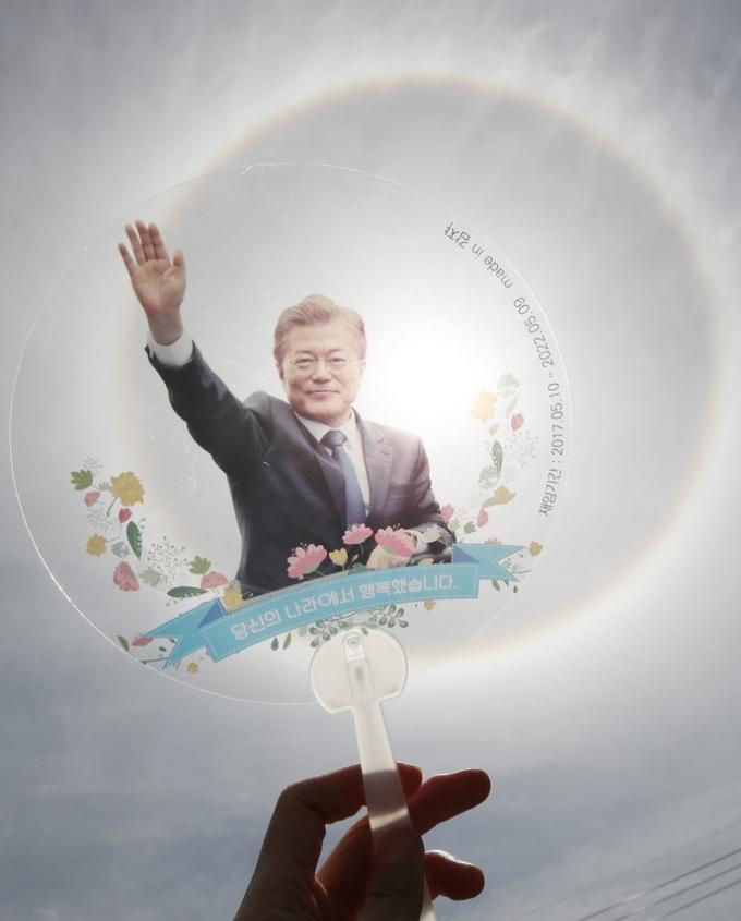 이날 낮 평산마을 하늘에 '햇무리'가 생겨 모여든 환영객들이 탄성을 자아내기도 했다. '햇무리'는 햇빛이 대기 중 수증기에 굴절돼 태양 주변으로 둥글게 무지개처럼 나타나는 현상을 말한다.