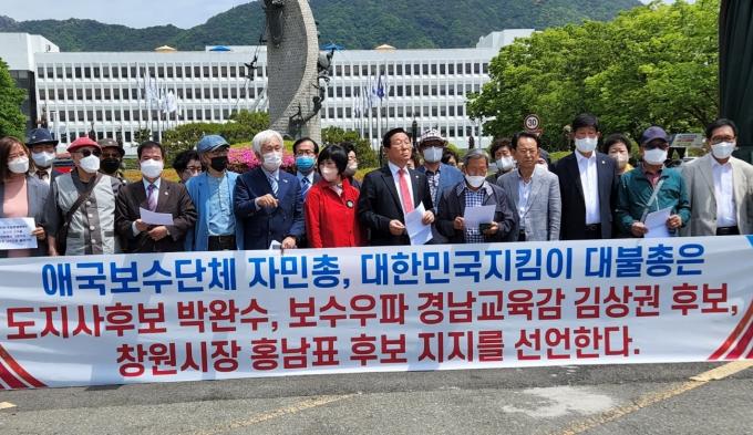 대한민국지키기 불교도총연합, 자유민주애국시민총연합 경남지부는 11일 오전 경남도청 앞에서 기자회견을 갖고 김상권 예비후보에 대한 지지선언을 했다.