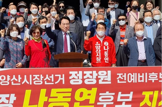 정장원 전 예비후보는 11일 오전 시의회 앞에서 기자회견을 갖고 "이번 선거는 양산의 발전과 후퇴를 결정하는 중요한 전환점인 만큼 나 후보의 당선을 위해 모든 역량을 쏟겠다"고 강조했다.