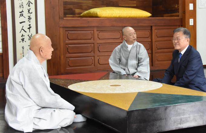 문재인 전 대통령은 12일 저녁 페이스북에 '귀향 후 첫 외출'이란 제목을 달고 "아버지·어머니 산소에 인사드리고, 통도사에도 다녀왔다. 법당에 참배드리고, 성파 종정스님과 현문 주지스님을 뵙고 모처럼 좋은 차, 편한 대화로 호사를 누렸다"고 전했다.