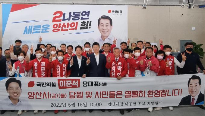 전날 홍태용 김해시장 후보 선거사무소 개소식에 참석한 뒤 양산으로 이동한 이 대표는 양주동 젊음의거리에서 도의원·시의원 후보들과 함께 유권자들을 만났다.