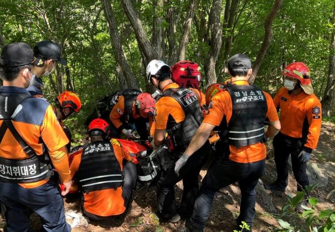 수색에 나선 소방당국은 헬기 추락 2시간 만인 10시 59분께 탑승자 3명 모두 구조했으나, 60대 기장과 30대 정비사는 머리 등을 다쳐 의식을 회복하지 못하고 있다. 기장은 울산지역 병원, 정비사는 부산의 한 병원으로 옮겨졌다.