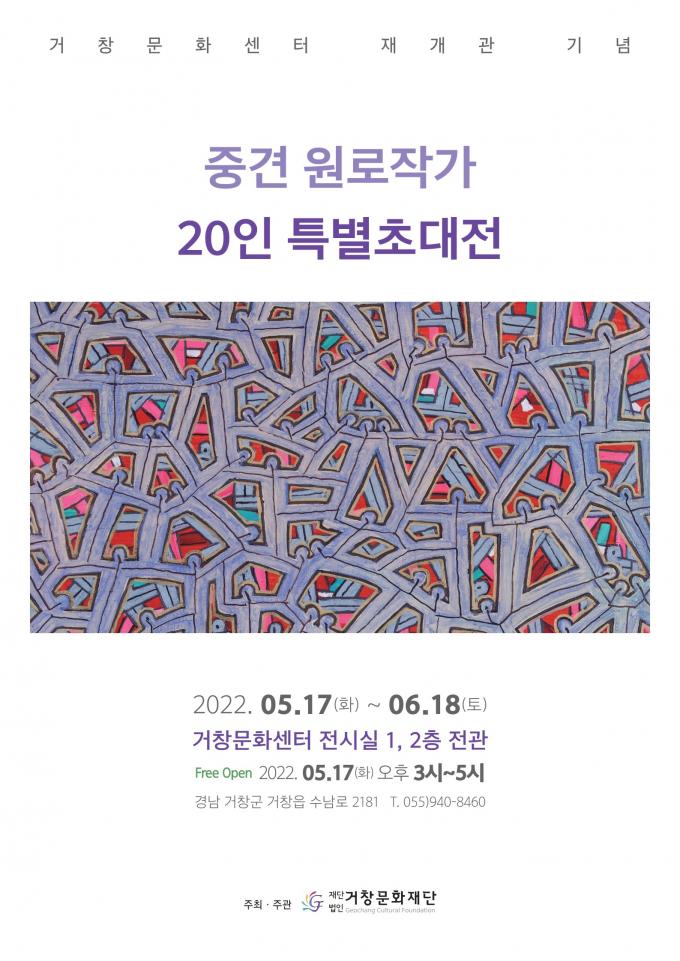 18일 거창군에 따르면 전날부터 시작된 초대전에는 거창문화센터 재개관을 맞아 거창 출신의 이상남 화백 등 한국을 대표하는 중견 원로작가 20인의 다채로운 색감이 담긴 작품 40여 점이 선보인다.
