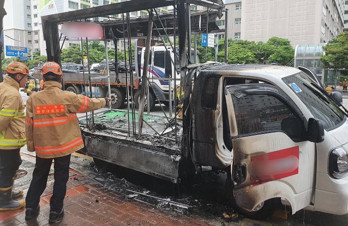 6·1 지방선거 공식 선거운동 첫날인 19일 아침 6시 33분께 부산시 동래구 부산도시철도 3호선 미남역 인근에 정차돼 있던 선거유세용 1톤 포터에서 불이 났다.