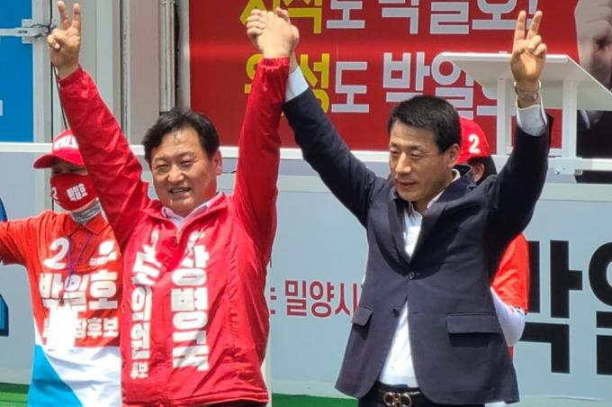 시의회 의장 출신인 황걸연 후보는 장병국·김상득 후보와 경선 경쟁을 벌이다가 김 후보와 함께 컷오프된 데 불만을 품고 무소속으로 출마했다. 밀양지역의 도의원 제2선거구에는 국힘 예상원 후보가 단독 출마, 무투표 당선자로 예정돼 있다.