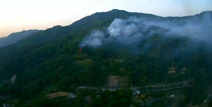 소방당국은 헬기 3대와 인력 170여 명을 투입해 방화선을 구축해 진화작업을 벌이다가, 일몰 이후에는 인력에만 의지한 채 밤 10시 30분께 진화했다. 이후에도 잔불 정리작업을 계속하고 있다.