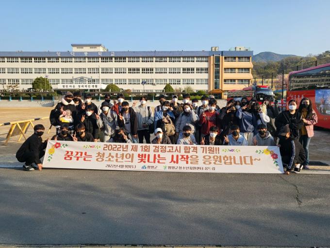 함양군 꿈드림은 학교 밖 청소년들이 고사장까지 안전하게 이동할 수 있도록 차량과 마스크 등 방역물품을 지원하고 도시락, 필기구 등도 지원하며 합격을 응원했다.