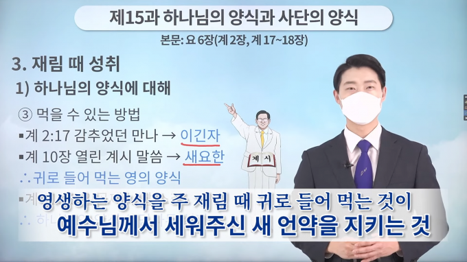 성창호 강사는 23일 '하나님의 양식과 사단의 양식'을 주제로 한 강의에서 "성경에는 입으로 먹는 육의 양식과 귀로 들어먹는 영의 양식 두 가지가 있다"며 바리새인(파)을 거론했다.