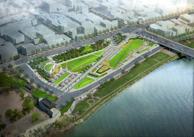 29일 진주시에 따르면 진주대첩 광장 조성사업은 촉석문 앞 1만9870㎡ 부지에 지하 1층 지상 1층 규모로 진행되고 있다. 사업비 940억 원의 예산을 들여 2023년 준공을 목표로 시행하는 대규모 사업이다.