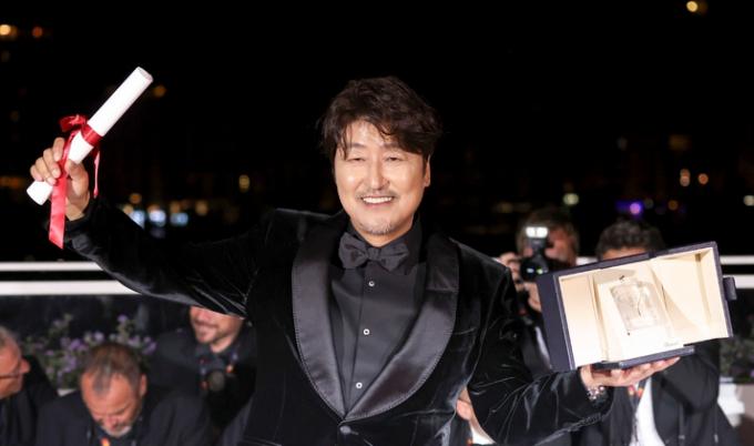 시상대에 오른 송강호는 떨리는 목소리로 "메르시 보쿠(감사합니다). 감사하고, 영광스럽다. 위대한 예술가 고레에다 감독에게 깊은 감사를 드린다"고 말했다.