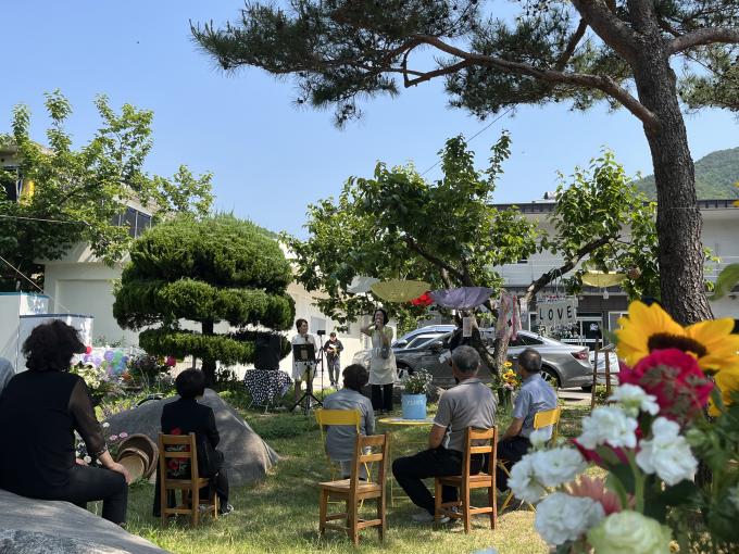 산청군 시천면의 '산청문화발전협의회 꽃향기 동호회(회장 박숙이)'가 5월 마지막 주말 면사무소 앞 잔디밭에서 주민과 함께하는 꽃꽂이 전시회를 가졌다.