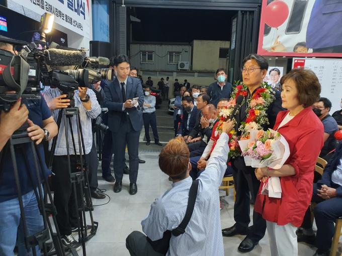 더불어민주당 허성곤 후보는 44.43%(2만66942표)를 얻고 있다. 개표 초기부터 양 후보의 득표율 차이가 10% 이상 벌어진 상태에서 그대로 유지되고 있다.
