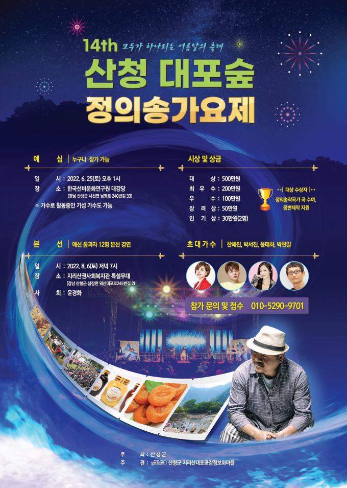 예심에서는 12명의 본선 진출자를 선발한다. 본선은 오는 8월 6일 오후 7시 삼장면 소재 지리산권 사회복지관 특설무대에서 열린다.