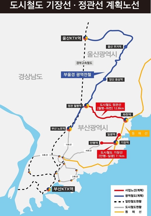도시철도 '정관선' 사업은 기장 좌천·월평구간과 동해선, 부산~양산~울산 광역철도를 연결함으로써 통해 정관신도시가 동부산의 새로운 중심으로 도약하는데 기여하는 프로젝트다. '기장선'은 안평역과 일광신도시를 연결해 기장군의 원도심에 대한 접근성을 강화하게 된다.